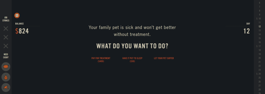 The one admitted downside of Spent is that it is far too easy to minmax your money by doing what is essentially an evil playthrough. In past runs of the game, I’ve lied, stolen, neglected my children, mooched off my friends, ignored my debts, and even abused myself by never, ever going to the doctor. Or eating. But it was all worth it to say I had a whole thousand dollars to my name. That said, knowing if a Presidential candidate is evil or not is still useful information, so I say make them play it.