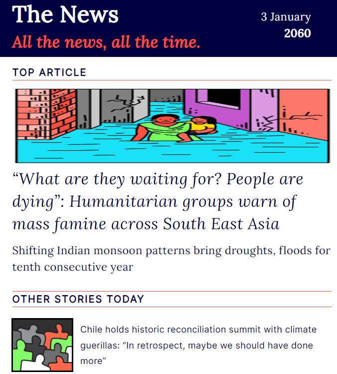 Oh hey, another free browser game! In this one, you play as the editor of a curiously omnipotent news site that every government in the world listens to (on the off chance we have that power here, give me money). Decade by decade, you must use your influence to sway climate change policy over the course of the 21st century.