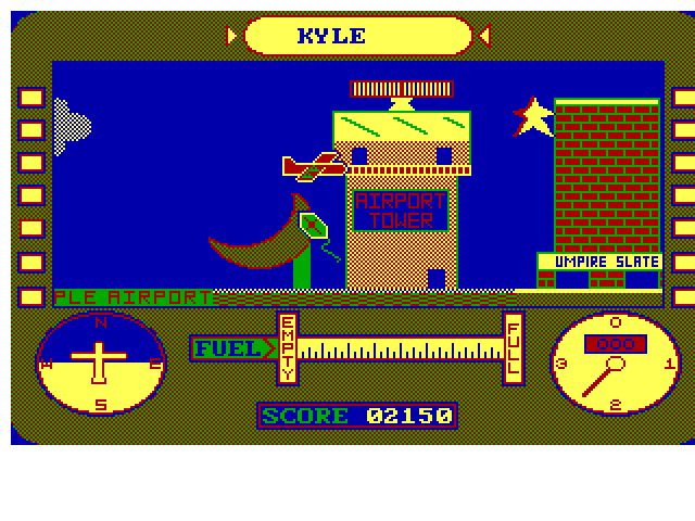 Okay, so this is barely a game. You use the arrow keys to move the plane up, down, back, or forward. You try to catch the various items flying through the air for points. When you reach an airport, you land. On higher levels, you have to keep an eye on your fuel, but that’s not much of an added challenge. It was a game made for literal children, and I was a child at the time. A computer game that let me fly an airplane was the coolest thing I had ever experienced in my entire life.