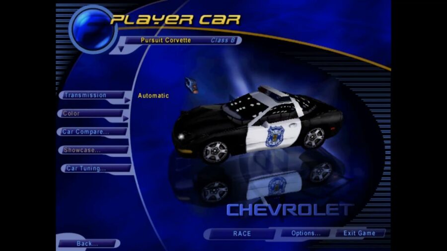 The cars were out of this world, and you could paint them in a wide array of colors, even using a completely custom palette. The tracks had shortcuts and alternate routes and could be raced forward, backward, mirrored, or mirrored backward, with weather on or off, in the day or at night. You could even be in a pursuing cop car setting down spike strips and handing out tickets to a grid of pseudonymous AI racers. You’d learn quickly that Leadfoot, Gotcha, and Ace were real assho…good, they were really good drivers. And that the other four names weren’t good enough to remember a quarter century later (they were Dead Beat, Wild One, Ram Rod, and Mulligan, I checked just now).