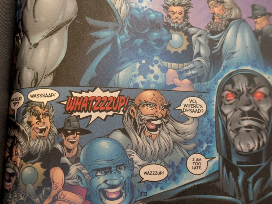 While I don’t think the team set out to do this from the start, the whole story reminds me of an anecdote Frank Miller and Alan Moore both tell of when they were tired at a comic convention’s end way back in the ‘80s, and had sat down to just shoot the shit over food, drinks, and to just recharge some of that energy that’s lost on the “working” side of convention life. They started talking about their writing methods and processes as peers often do and they began to debate and one-up each other on the worst situation they could put Superman in and still be able to write their way credibly out of: both settled on “Superman In Hell” being the most compelling. Rather brilliantly, that’s what Emperor Joker is: it’s Superman in Hell. But it’s Hell as shaped by the DCU and its decades-long history and stories. Supes is the only sane person in a world forced to go mad by The Joker and his near-omnipotent stolen power. And I hear you! The DCU is known for some of the most OP space gods in all comics, so surely the answer is just the Spectre, Darkseid, Ganthet, or some boring cosmic crap head just fixin- nope, stop, they’re there. They’ve been accounted for with one of the most “it was definitely the year 2000 when they wrote this” references possible.