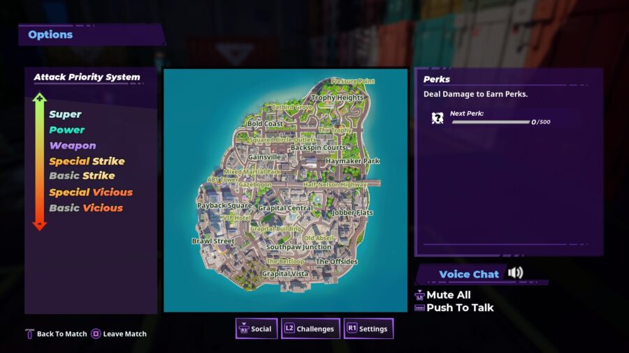 When two moves in Rumbleverse collide, the game checks the level of “Priority” of both moves to determine which one hits. There are seven levels of move priority: Super, Power, Weapon, Special Strike, Normal Strike, Special Vicious, and Normal Vicious. A move of a higher priority will always defeat a move of a lower priority in a head-on collision. If two moves with the same priority collide, there will be a clash and both players will be knocked back without receiving any damage.