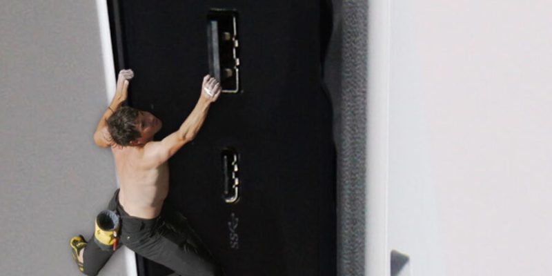 “Free soloing PS5 was extraordinarily difficult, as it is slightly taller and steeper than El Cap,” Honnold explained. “There are a few tricky areas that were difficult to get past, but I spent months developing the path I would take. The hardest part was when I had to wedge my body into the crevice of the disc drive for about 25 minutes of climbing. It’s scary, because you know that if you make any mistake, that’s it — you’re dead, especially because the PS5 was on a big bookshelf. Not even the carpeted floor beneath would have saved me.”