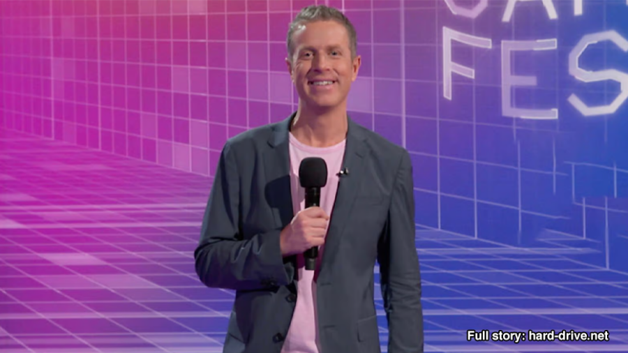 After triumphantly raising his arms to showcase an exciting game trailer, Geoff Keighley’s shirt accidentally lifted revealing an elaborate lower back tattoo spelling out ‘WILD THANG’