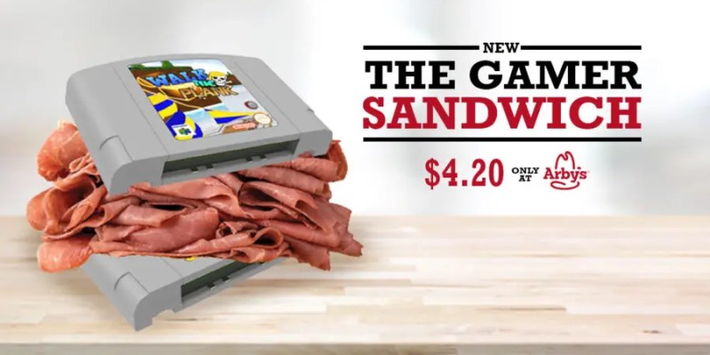 ATLANTA — Popular fast food chain Arby’s has debuted a new “Gamer Sandwich” menu item consisting of a quarter pound of their signature roast beef sandwiched between two video game cartridges from the Nintendo 64 console. The sandwich is meant to be marketed towards video game players nostalgic for the days of retro Nintendo and warm, juicy Arby’s roast beef.