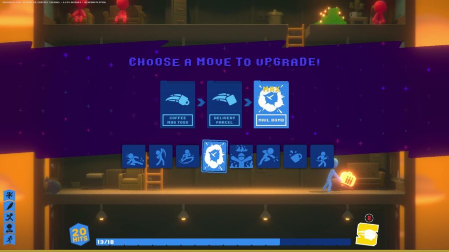 That’s something it could probably stand to call more explicit attention to, or maybe include a short cooldown on each building so you’re encouraged to vary up your approach. Stickman features some built-in mechanics that encourage you to avoid playing it in the most brain-numbing way possible, like how button-mashing stops being effective once you’ve picked up a few of the stronger movement abilities. I’ve put together some fun, fast-paced builds in Stickman, but if you aren’t paying attention, most of your combos end when you inevitably E. Honda sumo-headbutt your way out a window.