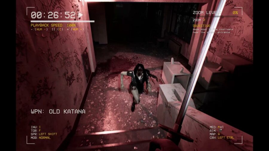 DEADCAM is intended as an anthology series, with each file set in a different place and time. Its first and currently only scenario, “Onryō,” takes place in an abandoned high school in 1990s Japan.