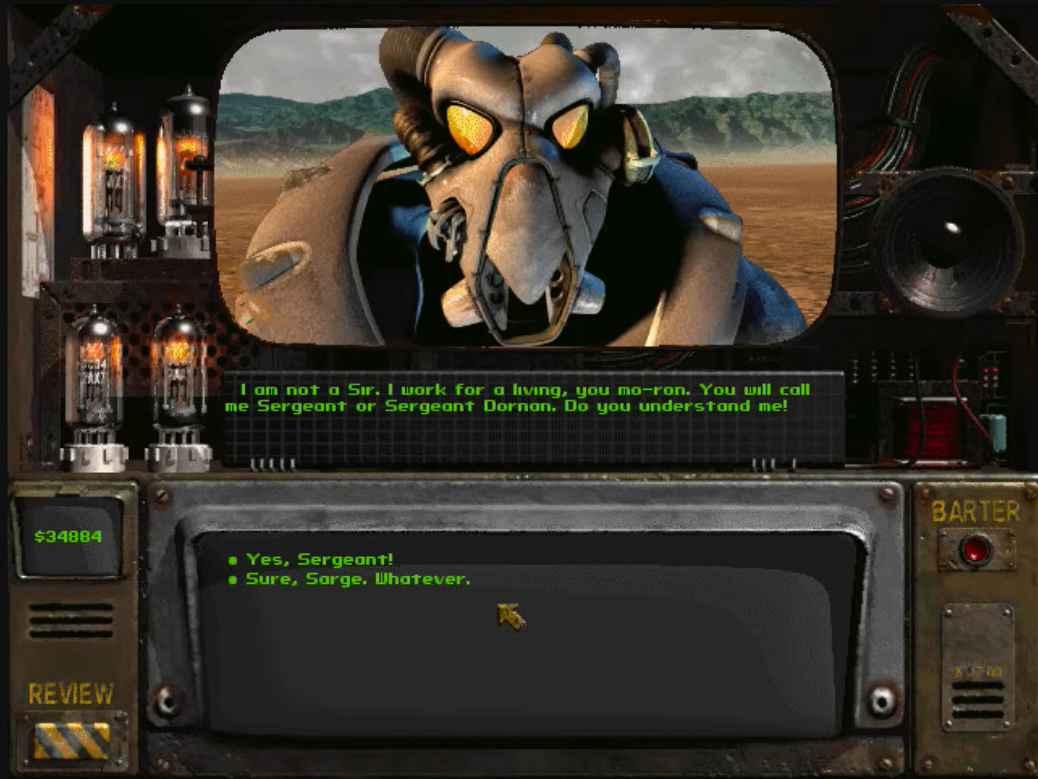 You should start with Fallout 3, which is the fifth game in the series. Or you could start with Fallout 4, the fifth mainline game in the series and the eighth game overall. Or Fallout: New Vegas, which unlike Fallout 4 is the fourth mainline game. New Vegas uses the same engine as Fallout 3 and uses some story aspects from a cancelled game you can’t play at all named Fallout 3. Or you could start with Fallout 76, which chronologically is the first game. But whatever you do, don’t start with Fallout 1. That would just be silly!