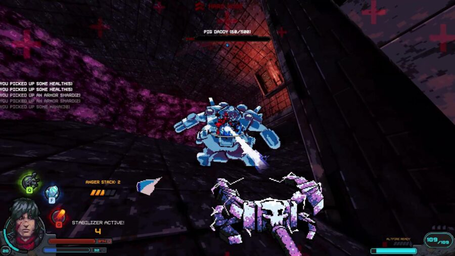 If I’ve got one serious point of criticism, it’s that PW2 really wants you to dig through every single level for all the upgrade tokens you can find. It’s tempting to race through the game to keep your adrenaline up, but each stage is full of well-hidden power-ups, and you want to put some work into your arsenal along the way. It might work better if PW2 awarded its perk points based upon your score, or had more of them drop from minibosses, rather than replicating the old-school Doom secret hunts.