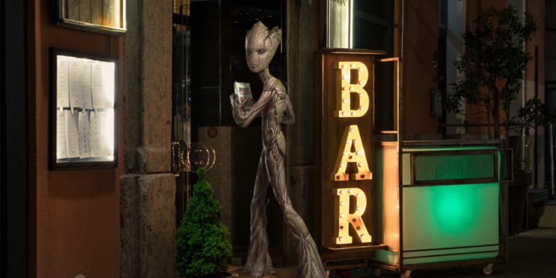 While Groot’s fellow Guardians of the Galaxy did not accompany him to Starlin’s, they eventually tracked him to the bar after discovering that he had snuck out earlier that night.