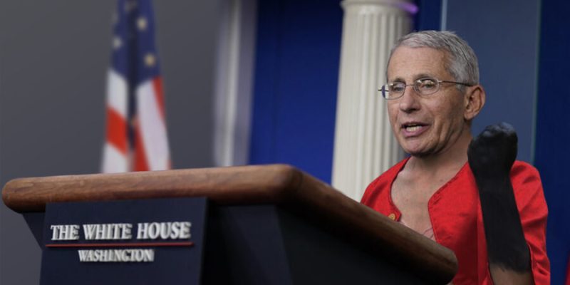 Dr. Fauci later showcased his planned outfit for after the time skip: an exposed muscular chest slightly obscured by a tattered medical coat. He also drew attention to the fact that one sleeve was missing to show off the new arm scar he got from the vaccine.