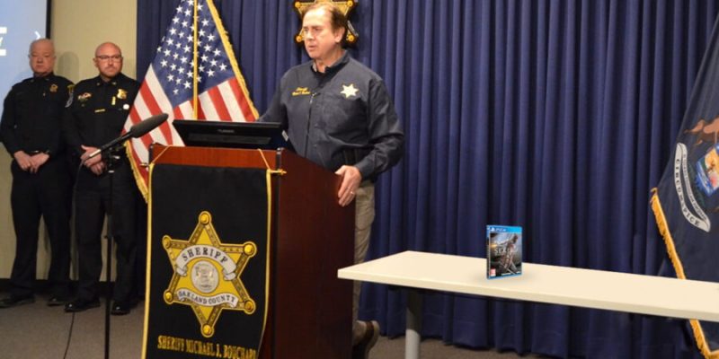 OAKLAND COUNTY, Mich. — Local police have gathered around a copy of a violent video game they removed from the streets earlier today in a celebratory photo, sources have confirmed.