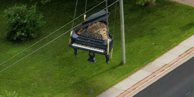 Following the red ‘X’ on the ground where the game disc has been gingerly placed, there is indeed a thick rope and a series of improvised pulleys suspending an ornate grand piano over the Halo disc, but it doesn’t matter. This deal is just too good to pass up. What’s the worst that could happen?