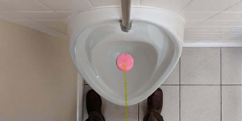 NEW BRUNSWICK, N.J. — Astounding friends and onlookers alike, intoxicated man Artie Merle reportedly no-scoped a urinal deodorizer block without aim assistance last night while relieving himself at a local bar.
