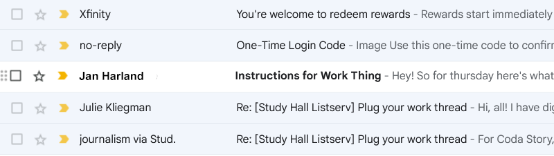 Frumber left the email unread in the hopes that the bold font of an unopened subject line would make it stand out to him on subsequent checks, thus jogging his memory. But since Friday he has received several more messages, pushing Harland’s lower down the list to a position which would require scrolling in order for it to be seen. According to Frumber, these were emails he sent to himself containing backup copies of his novel.