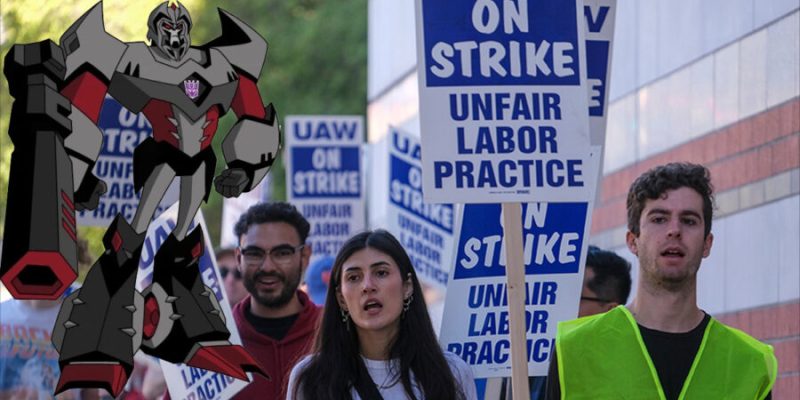 WAYNE, Mich. — As the United Auto Workers union kicks off its historic strike against “Big Three” automakers Ford, General Motors, and Stellantis, workers have been met with some unexpected support from the infamous faction of Cybertronian Transformers known as the Decepticons.