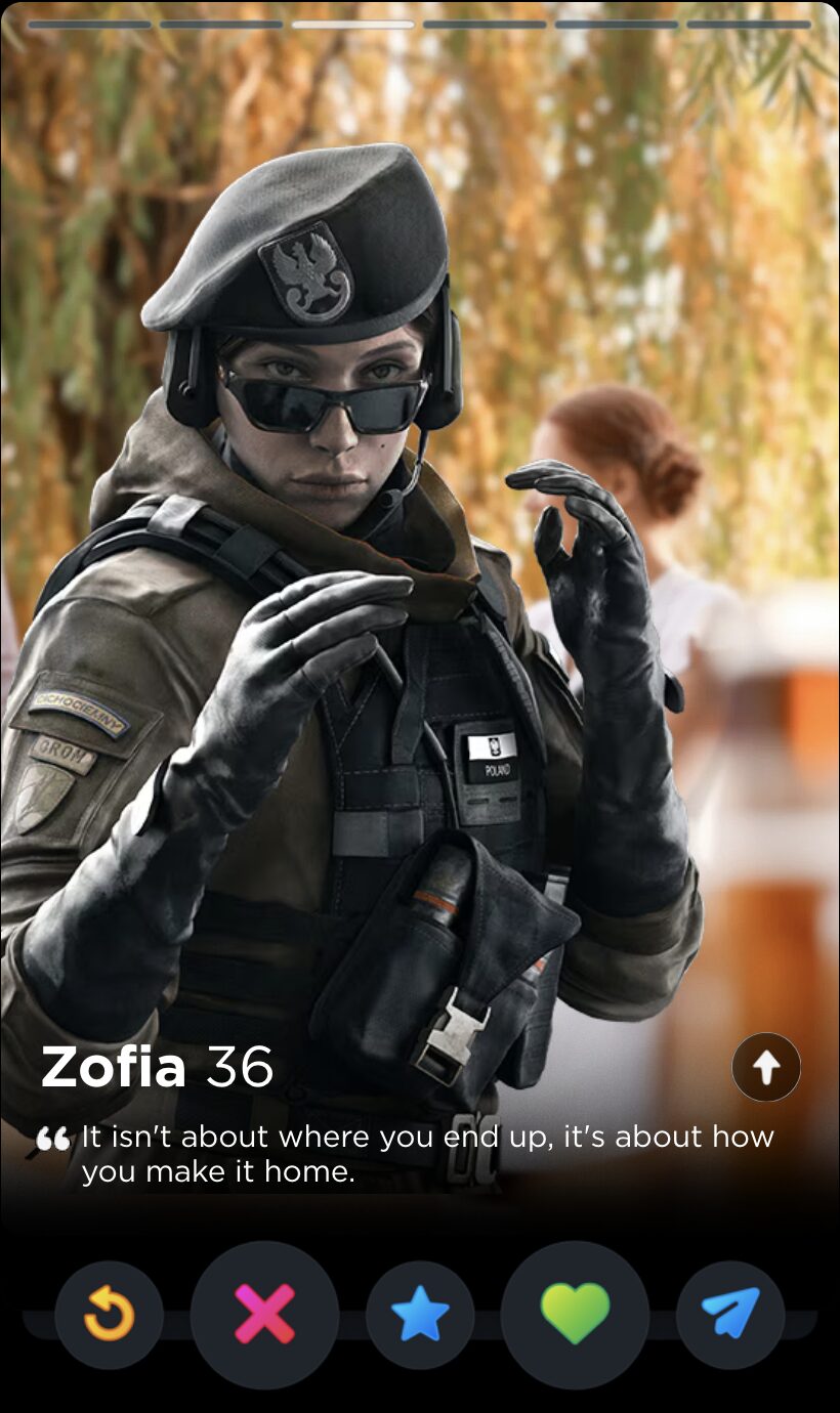 Zofia has one of the few—and I mean startlingly few—Operator quotes that actually feels thoughtful and devoid of pretense. Which of course means it has no place on a dating app.