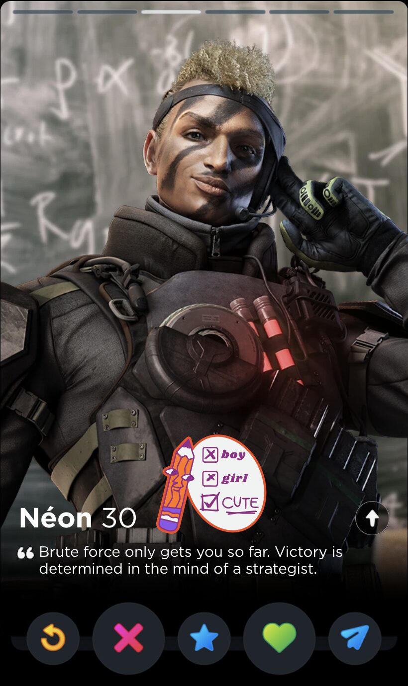 Found family is important, but this is incredibly sad Ram. No one on Tinder is going to know what Redhammer is. I’m staring at the Rainbow Wiki page right now and I barely understand what it is, other than an excuse for some Rescue Heroes-ass cosmetics.