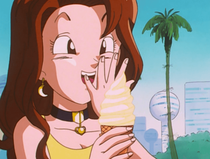 To be blunt: she’s fun, she’s rich, she’s a little air-headed but in a charming way, she’s genuinely into Goten, and isn’t a total killjoy or complainer. I wish there were more female characters in Dragon Ball who were written with that last point in-mind! Not even ALL of them, just MORE of them.