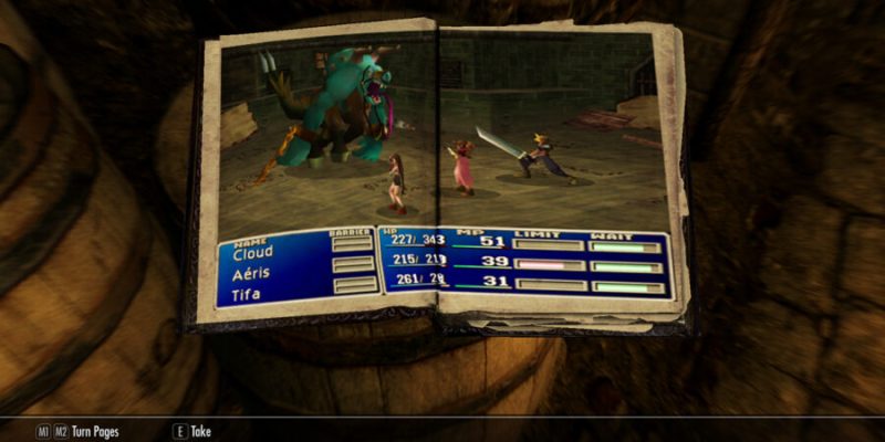 Bethesda announced today that 1997’s legendary roleplaying title Final Fantasy 7 will be available inside of all versions of The Elder Scrolls V: Skyrim, effective immediately.