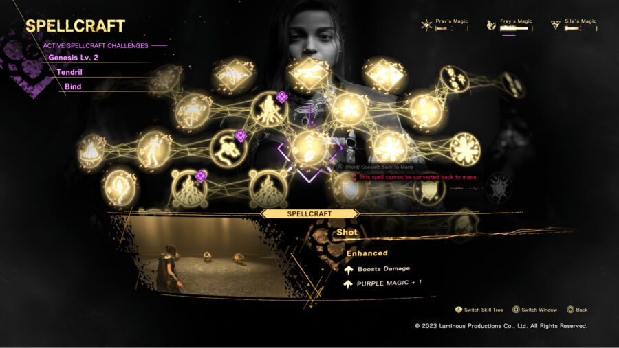 The reason you should focus on spellcrafting as soon as possible is because of the rewards you gain. Each time you complete a spellcrafting challenge, you’ll need to enter the Magic menu and redeem the completed challenge to receive a boost to all of your magic in that skill tree. Additionally, you’ll receive a reward based on what the spell or ability actually is. Traversal abilities will grant stamina regeneration, while attack spells or support spells will grant increased damage, effectiveness, or duration. If you’re able to complete every spellcrafting challenge in the tree, your magic power will be much stronger. As you can see, it’s definitely worth going out of your way to complete these, especially if you’re having trouble with enemies.