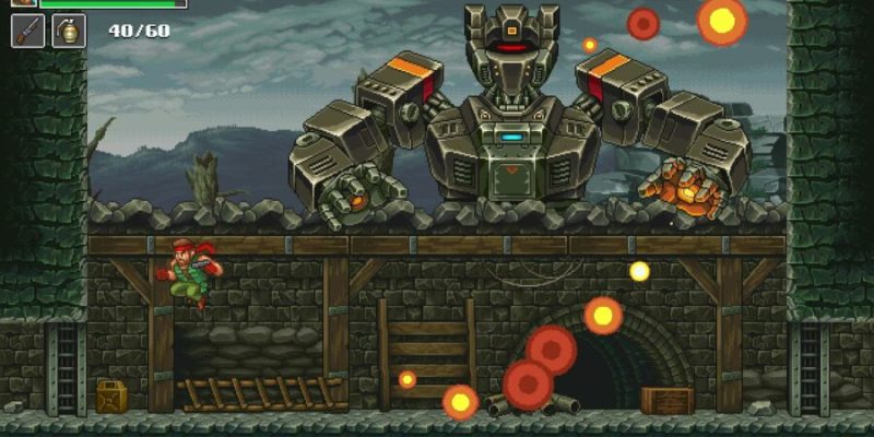The other half of Guns is an absolute love song to the Metal Slug series, complete with weird enemies, sudden ambushes, painstakingly well-animated enemies, and constant fights against crazy Rube Goldberg war machines. It’s a pleasure to run through some of the larger areas with guns blazing, taking out enemy soldiers, tanks, and robots alike with whatever firepower you’ve managed to scrounge up. Every prolonged combat sequence in Guns’ open world feels like the last 20 minutes of Commando.