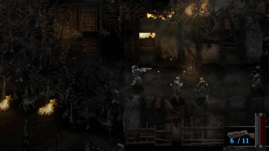 The purposeful awkwardness of its combat is a useful example of the (other) conflict at the heart of Conscript. It effectively recreates a particular point in history as a horror scenario, but it also wants to be a ‘90s survival horror game.