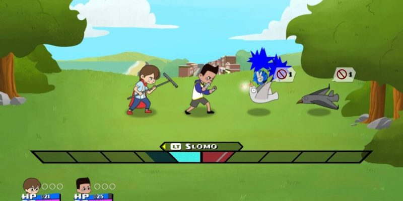 In its overall atmosphere, tone, and presentation, Cricket draws heavily on the comedic elements common to many games in the genre. In particular, with its party of young children fighting with things other than weapons, assortment of weird enemies, and main plot kicked off by a character crashing to earth outside a small town and delivering a somewhat mysterious call to adventure to our heroes, Cricket wears its love for Earthbound on its sleeve.