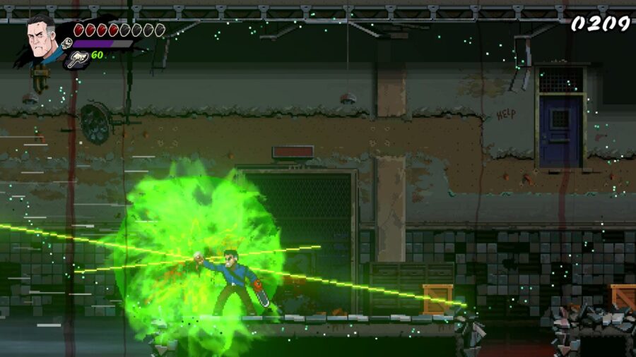 RetroRealms is clearly set up as the first two installments in some kind of shared 16-bit platformer universe, as both games end with vague sequel hooks. It’s not a bad format, and WayForward’s made a couple of decent faux-retro action platformers here. I’d go so far as to say that this is one of the best Evil Dead games ever made, although that might be damning it with faint praise.
