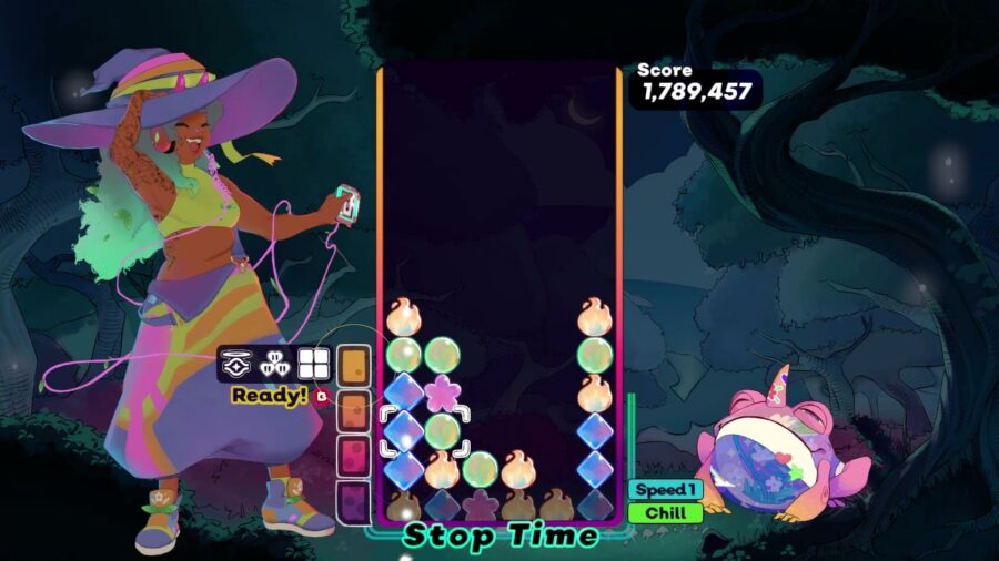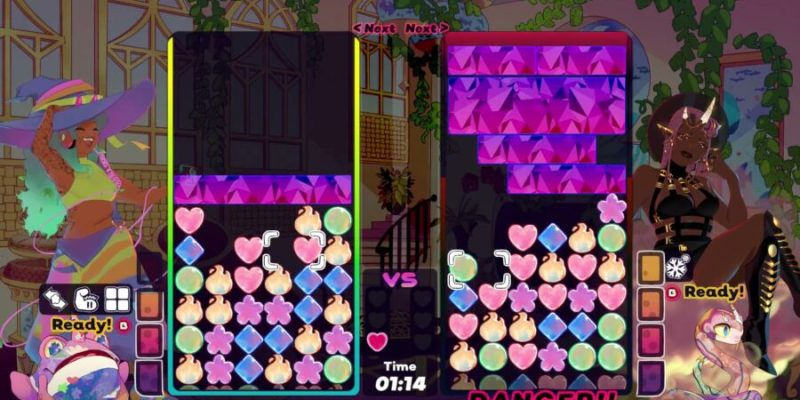 It might take you some time to wrap your head around Spirit Swap’s mechanics, especially if you’re like me and you come into it with some baggage from other games in the same lane. It’s a deliberate throwback to an era when falling-block puzzles weren’t automatically considered a casual-friendly genre, particularly when and if you play it against other people. It’s easy to learn, but timing, foresight, and reaction speed all count for a lot.