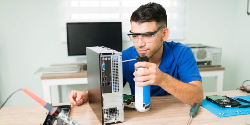 CHICAGO — Local Gamer Doug Pearson, 31, has reportedly begun his yearly ritual of spraying absolutely everything with compressed air and calling it cleaning, according to concerned sources.