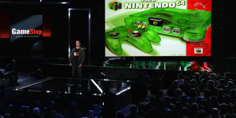 LOS ANGELES — Amid a packed auditorium, EDM music and swirling laser lights, GameStop CEO J. Paul Raines unveiled a used Nintendo 64 console made in 1996 to a frenzied audience.