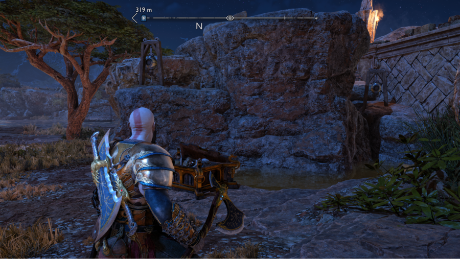 If you move to the left of the chest, while following the rockface behind it, you’ll soon find the third bell hiding up on top of the crags. Start with this bell first before moving on to the other two, and shortly after you’ll have the chest open.