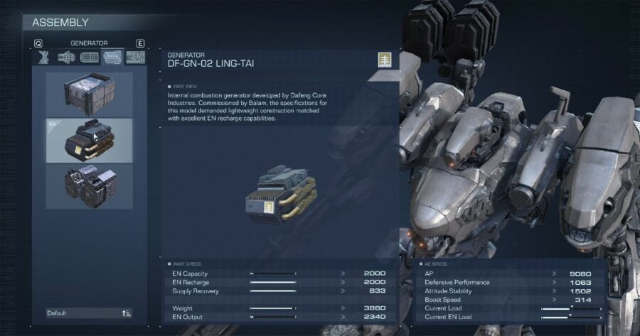 The massive medium-range assist stat in tracking targets makes for a good pairing with this weapon loadout. Any FCS with good medium-range tracking will suffice, but this one can be bought for 67K COAM.