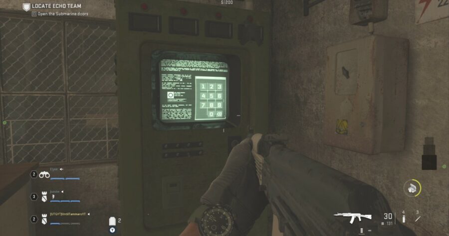 This process repeats two more times, so each player will need to enter a code into the code sequence machine. Each time the process repeats, more characters will be added to the red screen; however, some of the characters are duds as you will still only be looking for three numbers, so the other characters won’t have correlating numbers to find on the CCTV monitors. Once three correct sequences are entered the submarine doors will open and you’ll be ready to progress in this CoD raid!