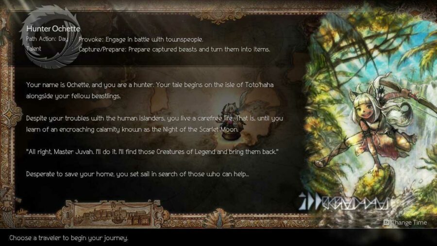 Starting with the first of two characters starting with the letter O, Suzie Yeung voices Ochette, the hunter from the isle of Toto’Hana looking for help from an upcoming calamity.