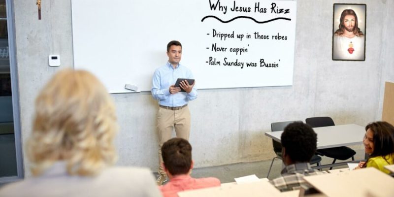 “The word of God hits different when you know the priest isn’t capping. Everything he says about the Rizzurection is straight facts. Pontius Pilate canceled Jesus leading to the ultimate L, but in three days he’ll finna be back like he never left!”