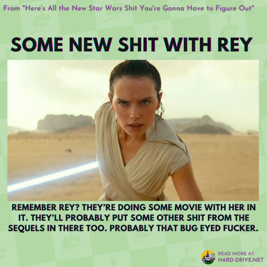 Last week’s Star Wars Celebration event was a breathtaking three days of announcements and previews and shit. We know everybody loves Star Wars, but that it can get overwhelming to the casual fans in times like this to know what exactly they’re going to have to keep up over the next few years. With that, we thought it may be helpful to provide our readers with a quick rundown of all the recently announced Star Wars movies and TV shows you’ll have to look forward to in the coming months and years, unless they end up canceling a majority of these movies, which probably won’t happen again!