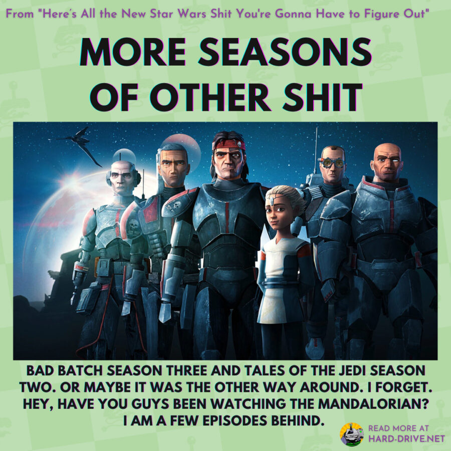 So there you have it, a pretty decent amount of Star Wars shit for you to keep up with. To get ready, you’ll probably want to make sure you’re caught up on all the shows, including the old ones like Rebels and Clone Wars. You should probably just get on Disney+ and go to the Star Wars tab and watch everything you haven’t seen, and then possibly rewatch some of the things you’re a little foggy on. After that you’ll be all set!