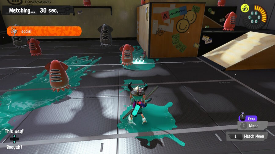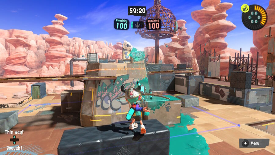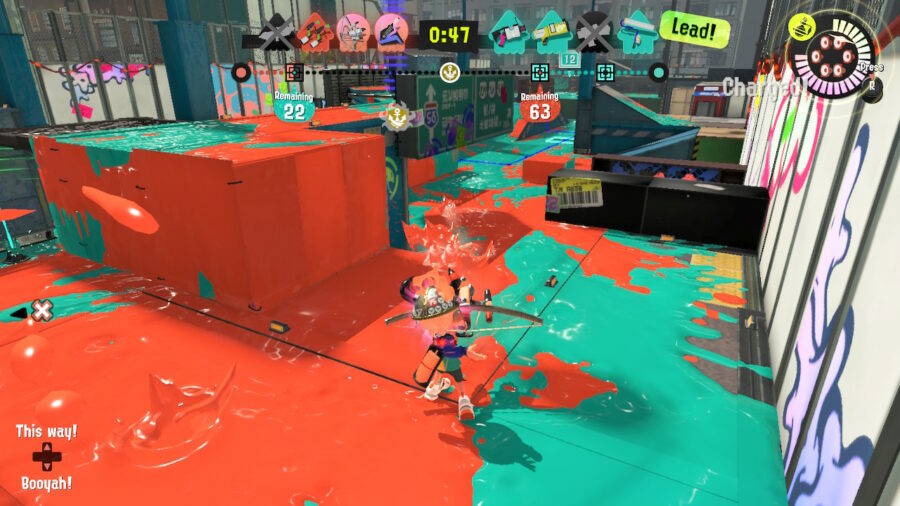 Firing charged shots towards the edges of these walls provides an opportunity for you to grab occasional splats from enemies who may think they are safely hidden behind the walls.