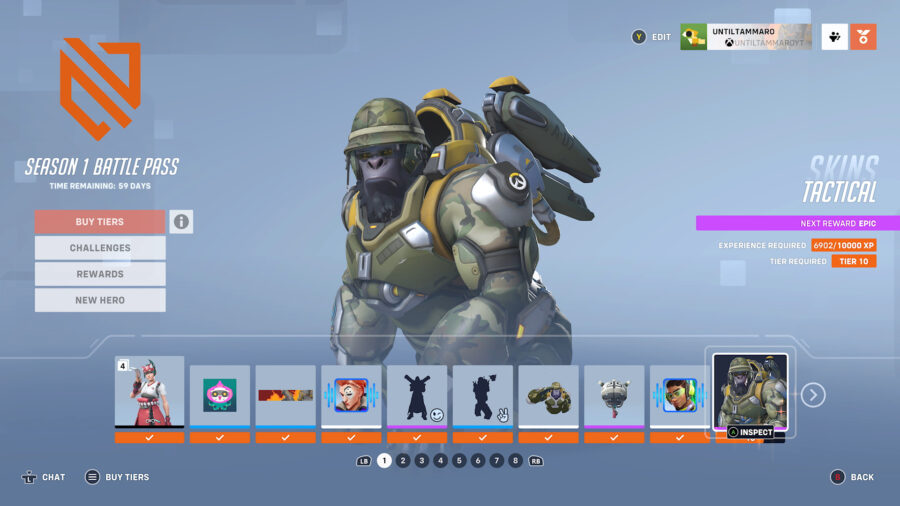 First, let’s examine the new Battle Pass system in a bit more depth. Overwatch 2’s Battle Pass will last for 63 days and features 80 tiers with both free and premium tiers. Each tier requires 10K XP to complete, meaning a total of 800K XP is required to complete all 80 tiers. The rewards vary from player icons, Hero voice lines, and newly introduced charms to Hero skins and even some Heroes. Of course, the premium tiers include more rewards than the free tiers and at a cost of $10 USD, include a 20% XP increase for the season; however, both tiers include ways to unlock any new Heroes.