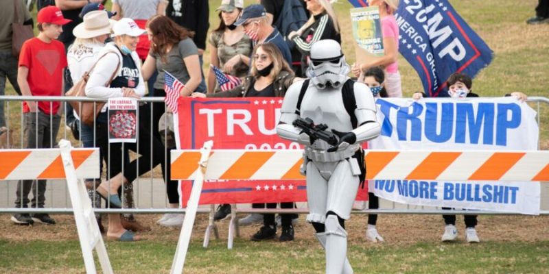 Trump was in the middle of a rally when shots were heard and the former president was swarmed by Secret Service agents. Eyewitnesses on the scene reported seeing a man in an Imperial Stormtrooper outfit amongst the crowd and then later fleeing the scene on a Joben T-85 speeder bike.