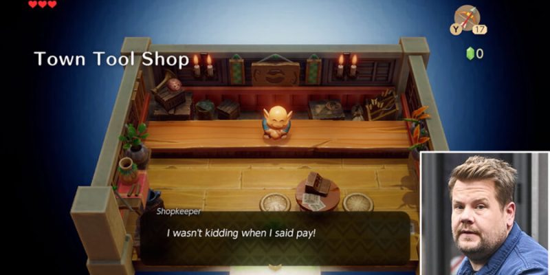 At press time, following widespread news of the incident around Koholint Island, the Town Tool Shopkeeper agreed to allow Corden back into his store if he miraculously comes back to life.
