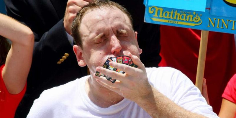 NEW YORK — Famous challenge eater Joey Chestnut attempted to broaden his fanbase into the gaming world by publicly swallowing all 529 commercially released Nintendo Switch cartridges in a record time of 9:16.32.