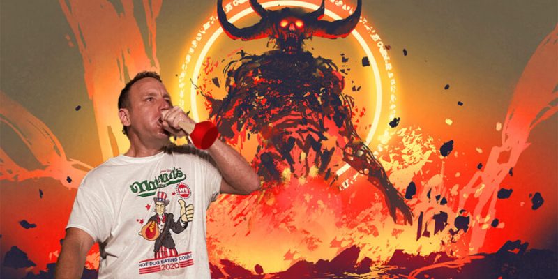 WESTFIELD, Ind. — Opening his throat and forcing a slew of glowing flasks down his throat, competitive eater Joey Chestnut reportedly solo-killed a final boss by speed-chugging a record 54 potions.