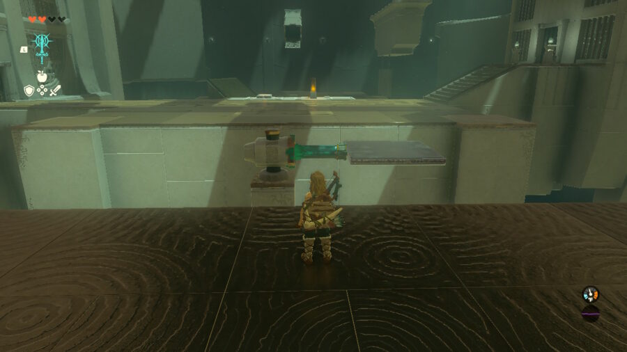 If you aren’t there yet, you can find this shrine at the coordinates (-0705, -0870, 0031). Once you’re in, the first thing greeting you is some pretty simple platforming. Just jump on the platform across the gaps, no tricks needed.