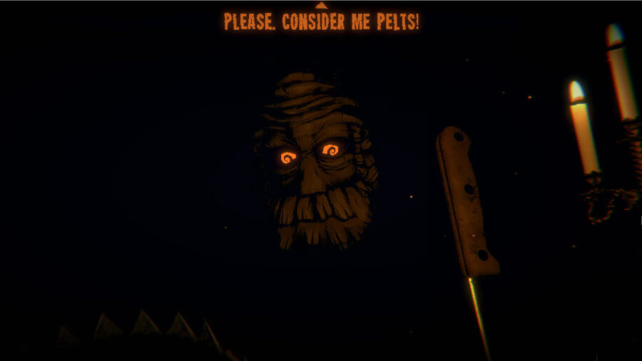 The description thus far may sound to some like all of the immersion and nuance present in typical TCGs has been sapped entirely, leaving you with a smoothed over, bumper-bowling version of the usual fare. This couldn’t be further from the truth, as the narrative is truly what binds it all together. It’s not the conceit you’re almost always asked of with these things, to buy into the fantasy lore that exists within the hokey, intangible world of the cards. Rather you, yourself, are directly at the center of it all as an unwilling participant, kidnapped by some fucked up freak in the woods, forced to play rounds of this macabre card game against your captor in some remote cabin. Think Misery if Kathy Bates spent the whole movie forcing James Caan to get super into Magic with her.