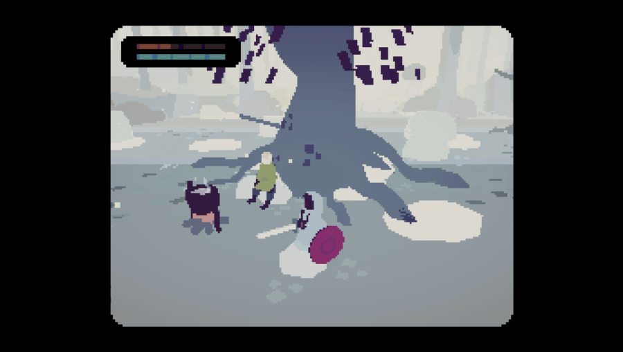 Aesthetically it feels as if you’re watching the action through a Game Boy screen (more specifically a Super Game Boy if you recall the SNES add-on). It adds to the whole minimalist package, which includes the lack of music and minimal sound effects. It evokes the feeling of finding a game you shouldn’t be playing on a parent’s old computer.