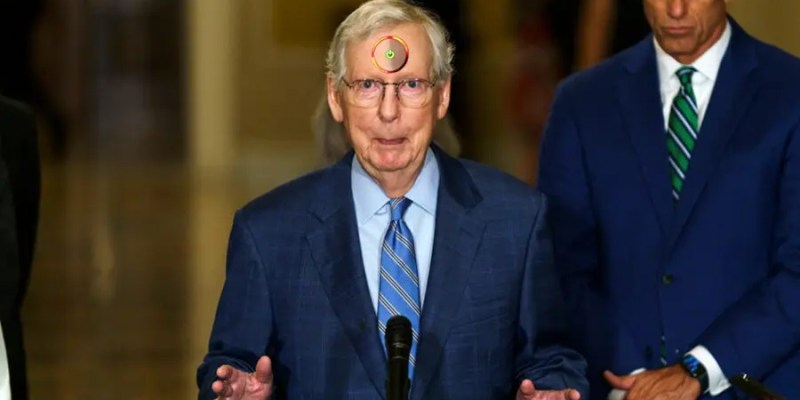 “Sure, he glitched a little bit up there and started blinking red from his forehead,” said Senator John Barrasso (R-Wyo.), who assisted McConnell away from the podium after the ring appeared. “But this was just a little oopsie, no big deal. Find me an 81-year-old man that doesn’t blink red once in a while. To be on the safe side, however, we have filed a support ticket with Microsoft and are just hoping they still know how to deal with this. They think they can have him as good as new in three to four weeks! It honestly won’t even be his longest vacation this year.”