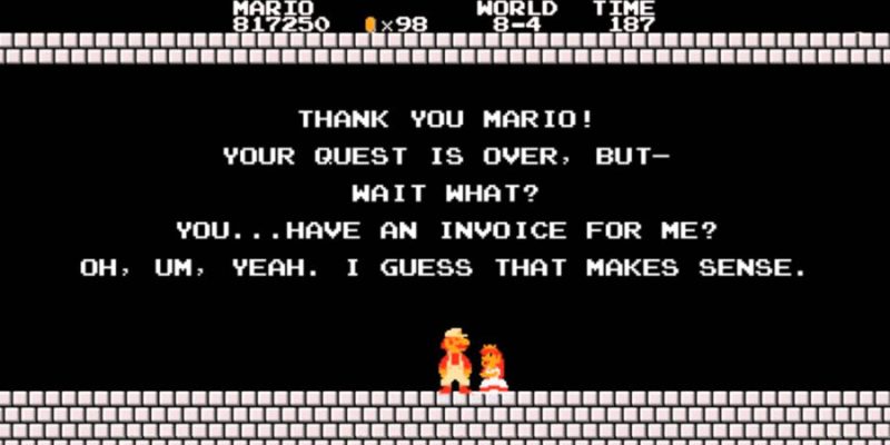 Mario Invoices Princess for 100 Hours of Plumbing Work Performed During Harrowing Rescue